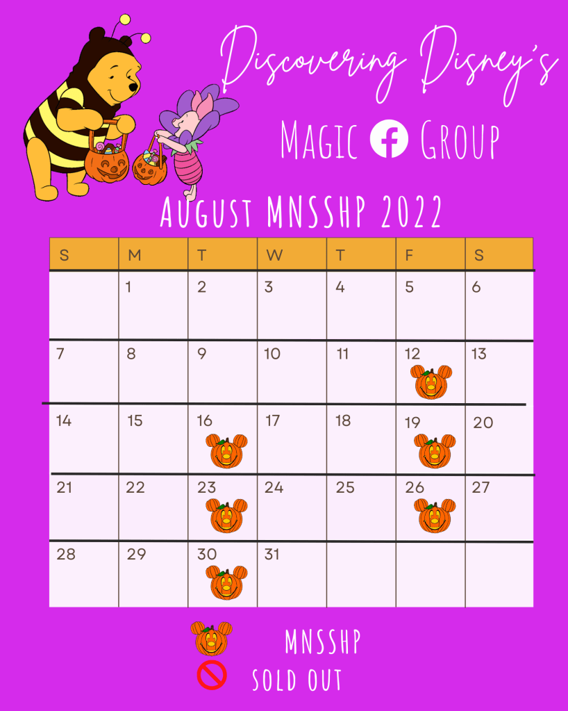 MNSSHP will be held on select nights starting August 12th, 2022. Guests will be allowed to enter the Magic Kingdom at 7pm. The party will run through midnight. Guests staying at a Walt Disney World Resort, Walt Disney World Swan and Dolphin, as well as Shades of Green are now able to purchase their tickets in advance of the general public on May 12th. For all other guests, ticket sales will be available on May 18th. Ticket pricing varies by party date, pricing will be $109-$199 (plus tax) per person in your party. Available MNSSHP dates can be found below.