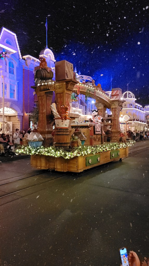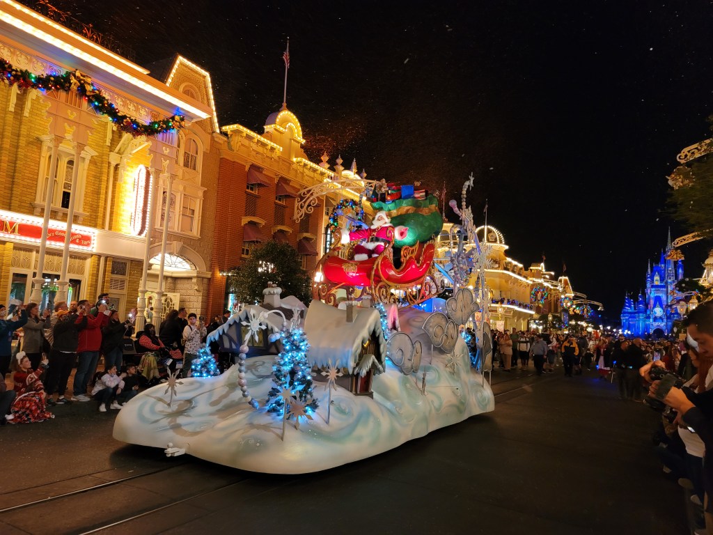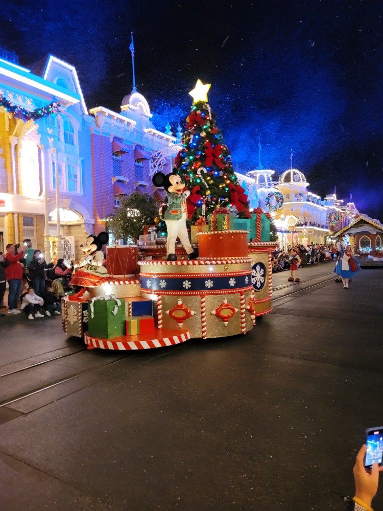 Mickey’s Once Upon a Christmastime Parade pulls out all the bells and whistles. From the amazing toy soldiers that are perfectly aligned as they march down Main Street, to your favorite Disney Princesses, to Mickey and his Pals, and to Santa and his reindeer finishing at the end. Be sure to take in every detail and every smell. The smell of gingerbread and hot chocolate and the floats pass you by makes this the most memorable parade in Disney World! We always suggest catching the parade from Main Street USA so you don’t miss the snow! It’s something you don’t want to miss as it’s the most magical part of the whole party! You’ll have 2 opportunities to watch this parade at 8:30pm and 11pm.