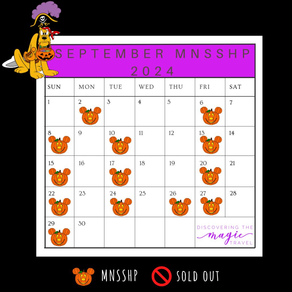 MNSSHP will be held on select nights starting August 9th, through October 31. Guests will be allowed to enter the Magic Kingdom at 4pm. This party normally runs through midnight. This event does require the purchase of a MNSSHP Ticket for each guest in your travel party (ages 3+.) Guests staying at Walt Disney World Resorts, Walt Disney World Swan and Dolphin, as well as Shades of Green will be able to purchase their tickets in advance of the general public on May 8th. For all other guests, ticket sales will be available on May 15th. Ticket pricing varies by party date. Pricing is $119-$199 (plus tax) per person in your party. Available MNSSHP dates can be found below.