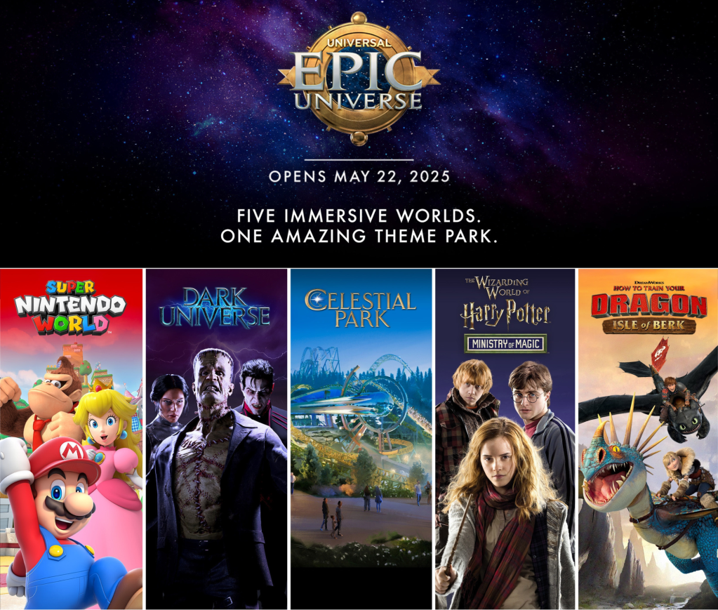 We look forward to the Grand Opening of Epic Universe on May 22nd, 2025. This new park will offer guests even more fun and adventure, featuring a variety of thrilling attractions that cater to visitors of all ages. This park will be home to five portals that will transport you to some new and exciting places. Celestial Park, Ministry of Magic, Super Nintendo World, How To Train Your Dragon: Isle of Berk, and Dark Universe. From immersive experiences based on some beloved franchises to state-of-the-art rides that push the boundaries of entertainment, each corner of the park promises to capture the imaginations of its guests. As we countdown to this highly anticipated event, excitement continues to build, and we can’t wait to welcome everyone to explore the endless possibilities that await within this extraordinary new universe.